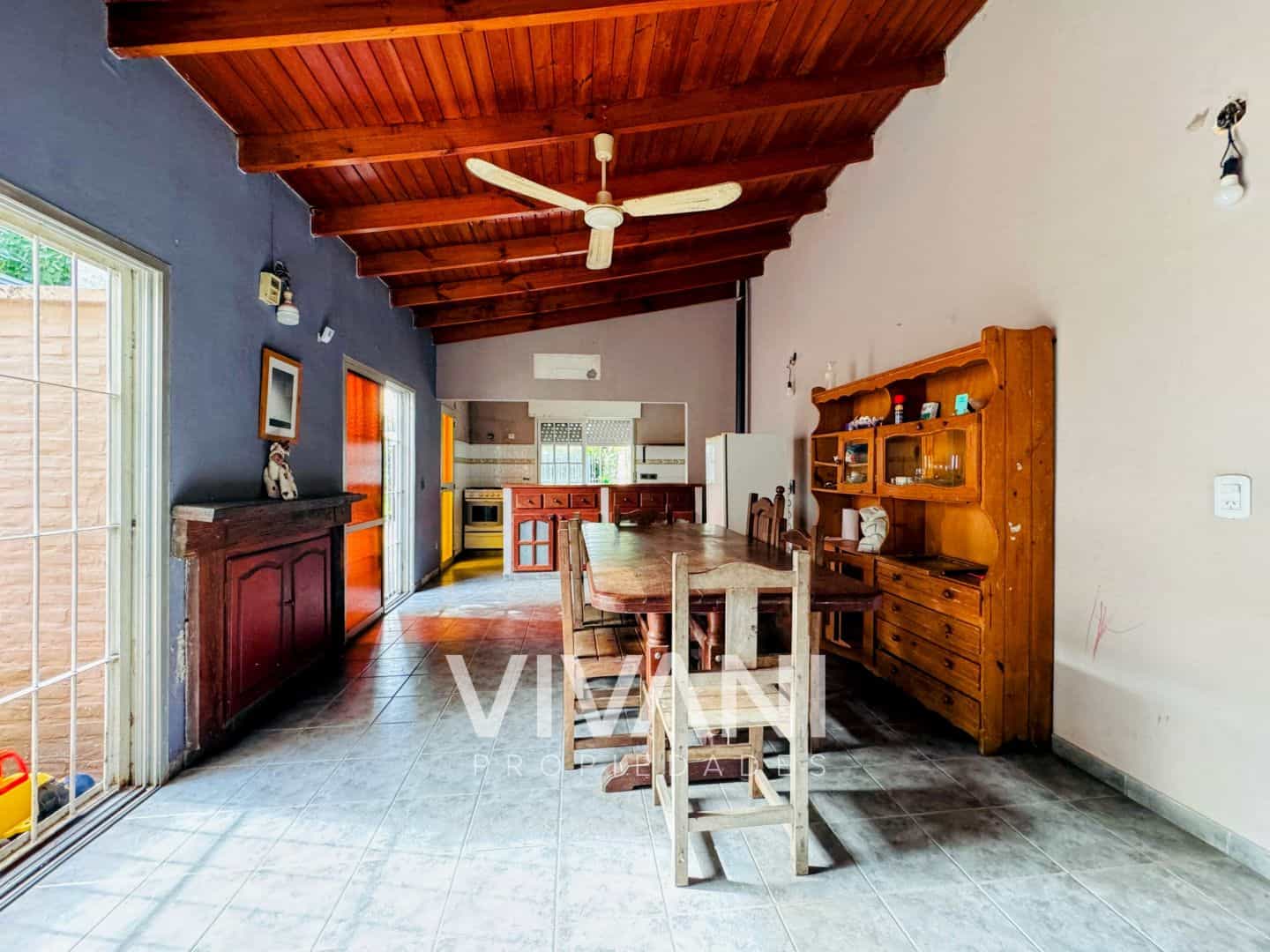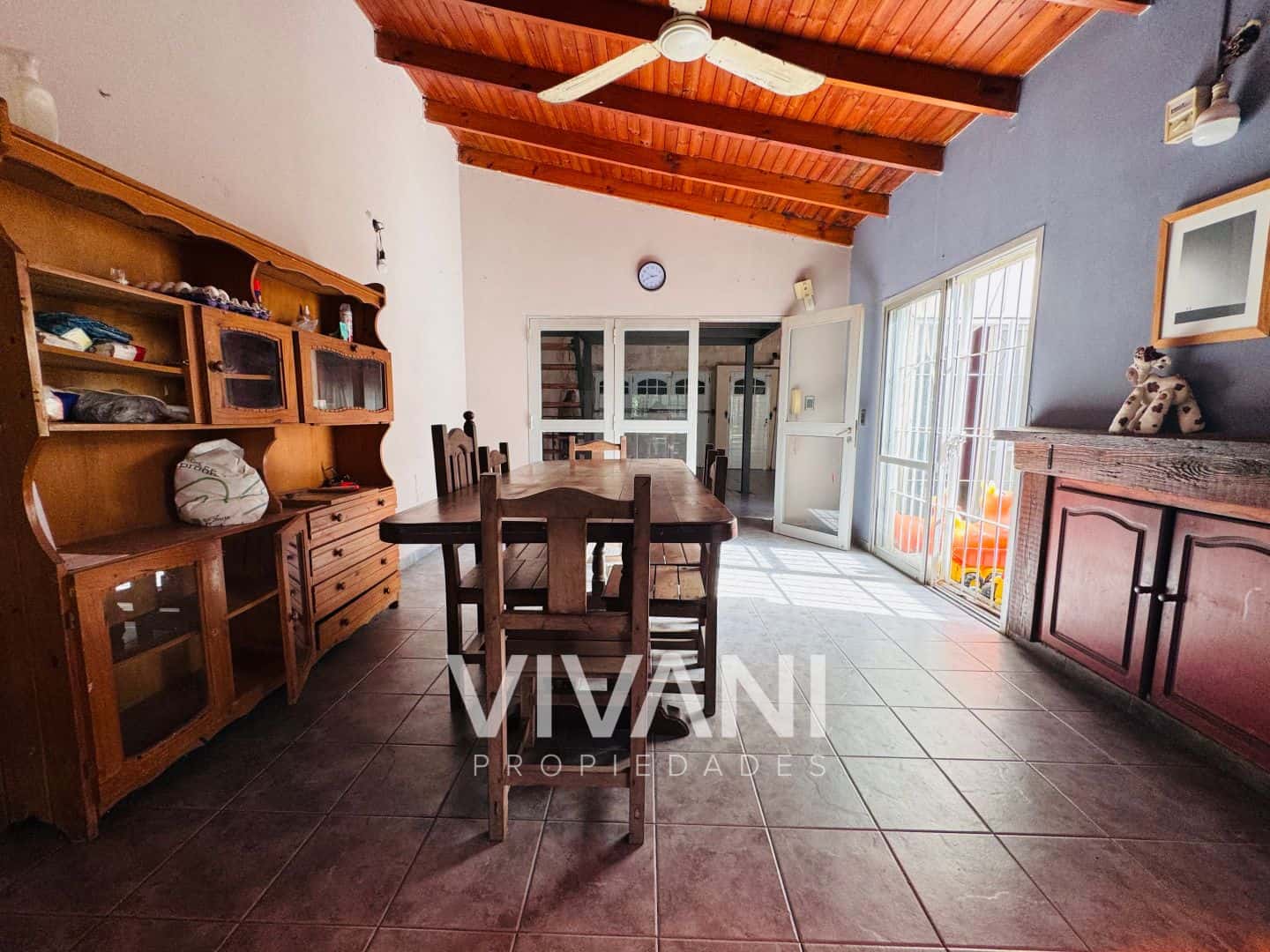 SOBRE LOTE DE 10X40 METROS.CASA DESARROLLADA EN PLANTA BAJA – LIVING con ventilación al frente – COCINA con muebles bajo mesada, barra desayunadora – COMEDOR DIARIO con estufa hogar – 2 DORMITORIOS amplios ( 1 con placard) – 2 BAÑOS completos ( 1 con hidromasaje) – COCHERA para un auto – PATIO con parrilla – – ESPACIO LIBRE con verde con verde y pileta – GALPÓN/ CANILES.